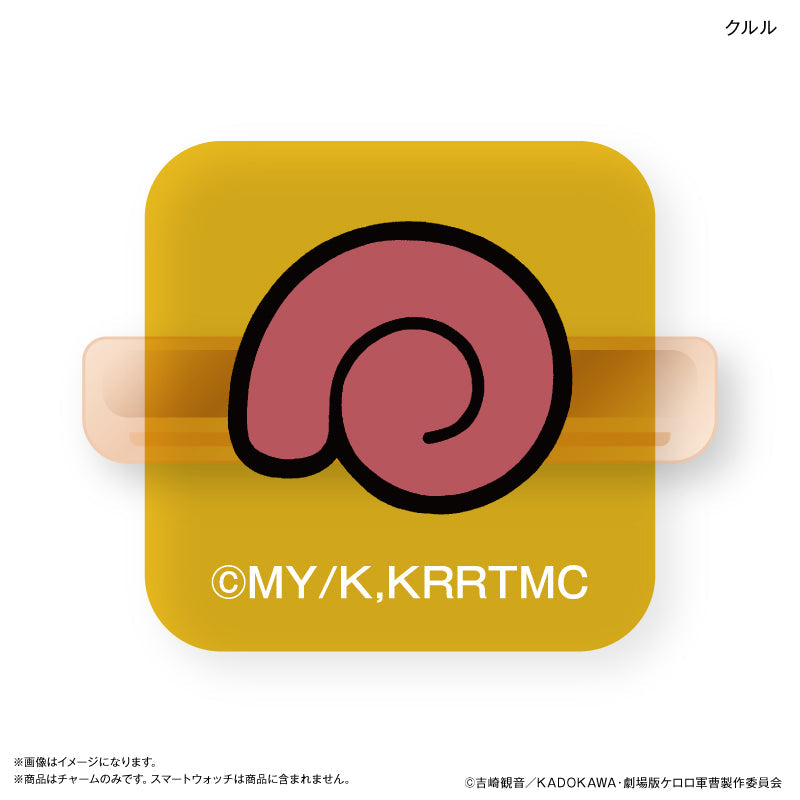 アニメ『ケロロ軍曹』より、クルルのスマートウォッチチャームが登場!推し活や日常使いにぴったりな、スマートウォッチにつけて楽しむアクリルチャームです。キャラクターのお顔とマークの2個セットで、写真映えもばっちりなアイテム。イベントやお出かけに身につけて、SNSにアップして見せてね!
