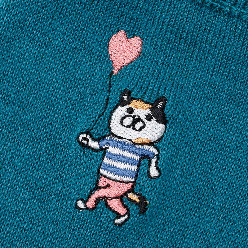 サイドには、NYASA(ニャサ)や、ねこ茶商、ふうせんを持ったネコなど、個性豊かなネコたちがモチーフとなり刺繍で施されています。