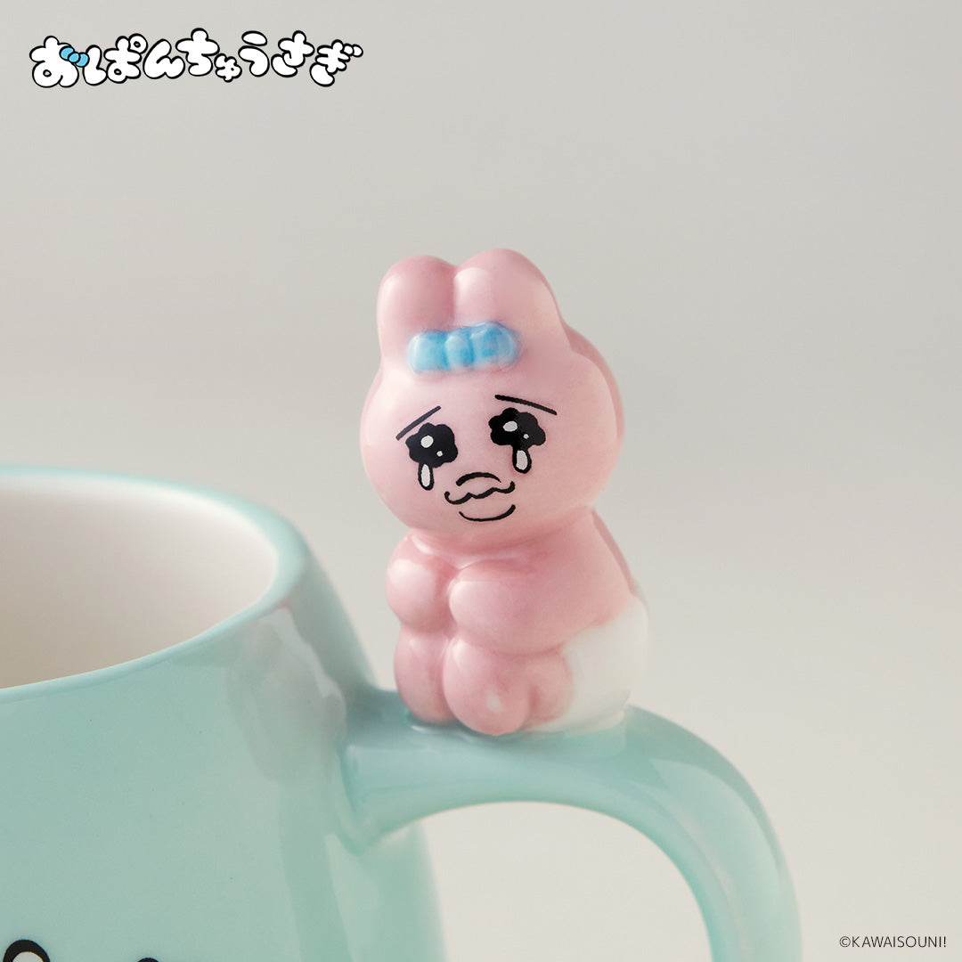 おぱんちゅうさぎが取っ手部分にちょこんと乗った、可愛さ満点のマグカップ!