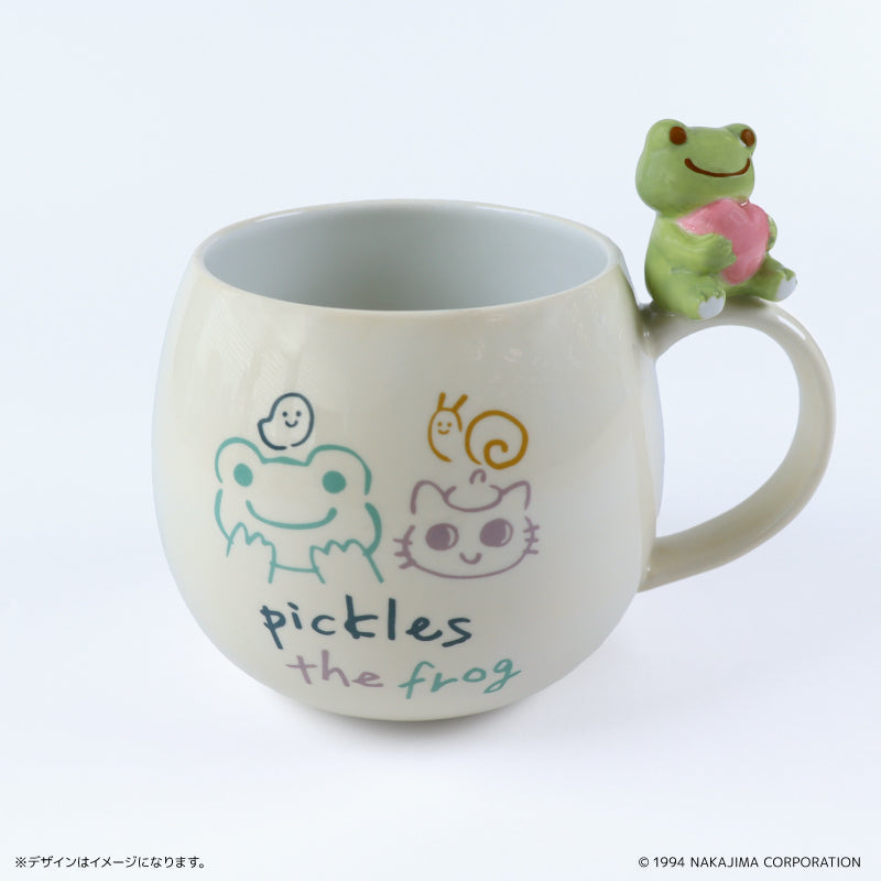 ピクルスが取っ手部分にちょこんと座った、可愛さ満点のマグカップ!ハートを持つピクルスがキュートでティータイムがより楽しくなります♪