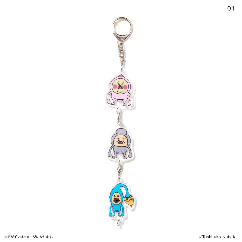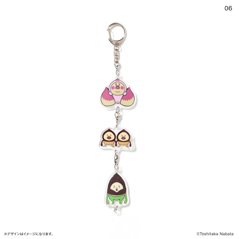 3つのチャームがつながったアクリルキーホルダーです!1つ1つのチャームをはずして使うこともできるので、いろいろな組み合わせで楽しんでくださいね♪1BOXで全種揃います。